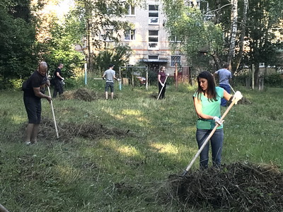 20 июля у дома №5 по улице Курчатова прошёл большой субботник, в котором приняли участие сотрудники АО НИФХИ им Л.Я.Карпова, депутат Павел Урожаев, председатель Союза ТОС Обнинска Татьяна Шевцова, председатель ТОС 25,36 мкр. Оксана Антонова, сотрудники Администрации города, жители двора.