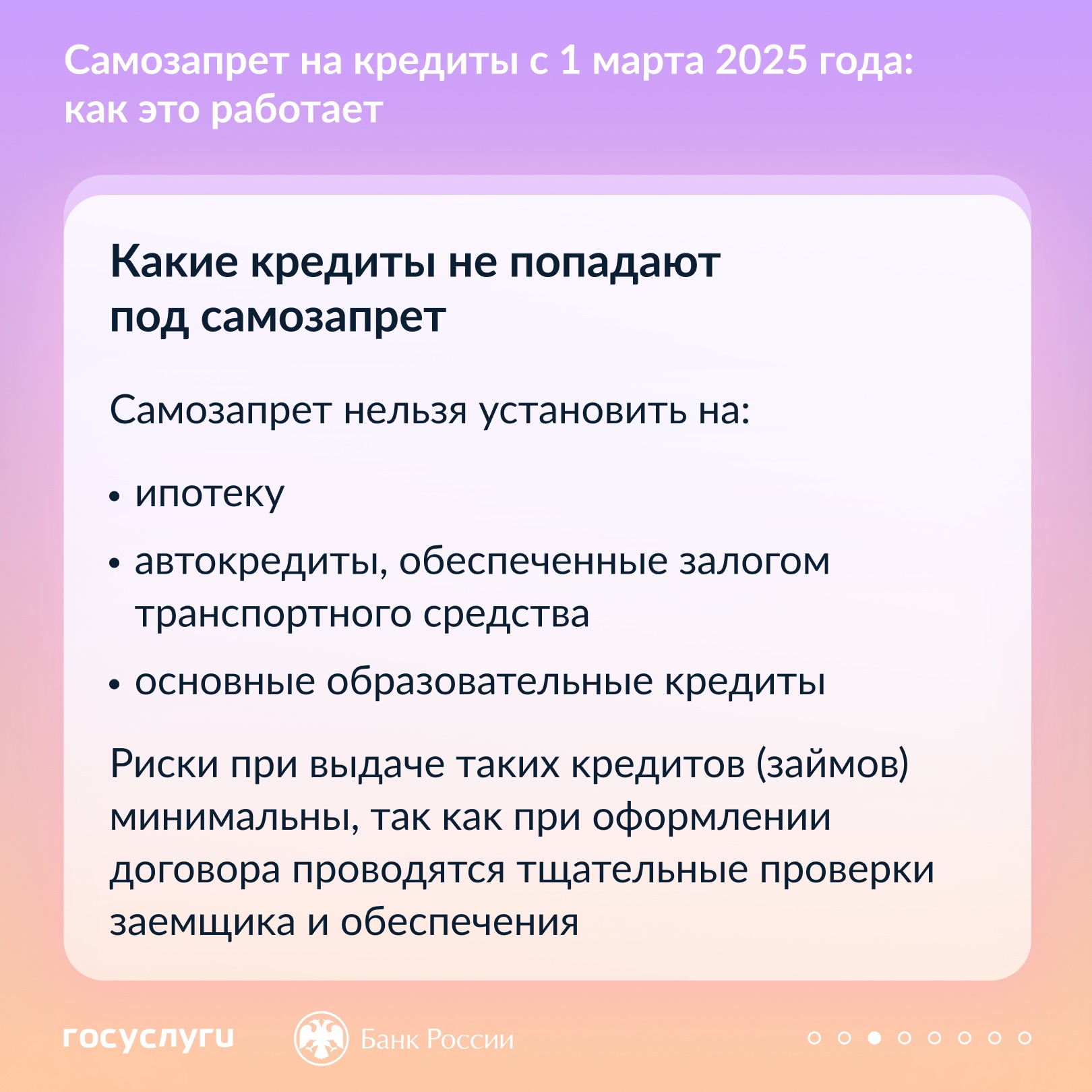 Больше информации о механизме самозапрета смотрите в карточках, подготовленных порталом Госуслуг совместно с Банком России.
