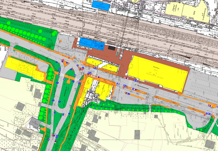 Предлагается разделить встречные транспортные потоки на пересечении улиц Московской и Железнодорожной дисциплинирующими островками безопасности. Это будут газоны с плиточным покрытием. Также планируется обустроить пешеходные переходы и установить дорожные знаки.
