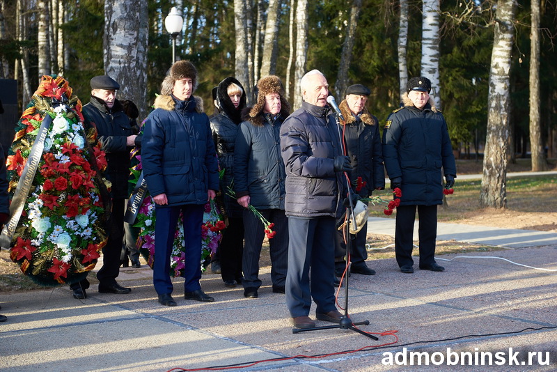 На митинге также выступили начальник учебного центра ВУНЦ ВМФ «Военно-морская академия», капитан первого ранга Михаил Воложинский, ветеран ВОВ полковник Герман Кошелев. Очень эмоционально и прочувствованно говорила и Руководитель Обнинского Молодежного центра Татьяна Баталова.
