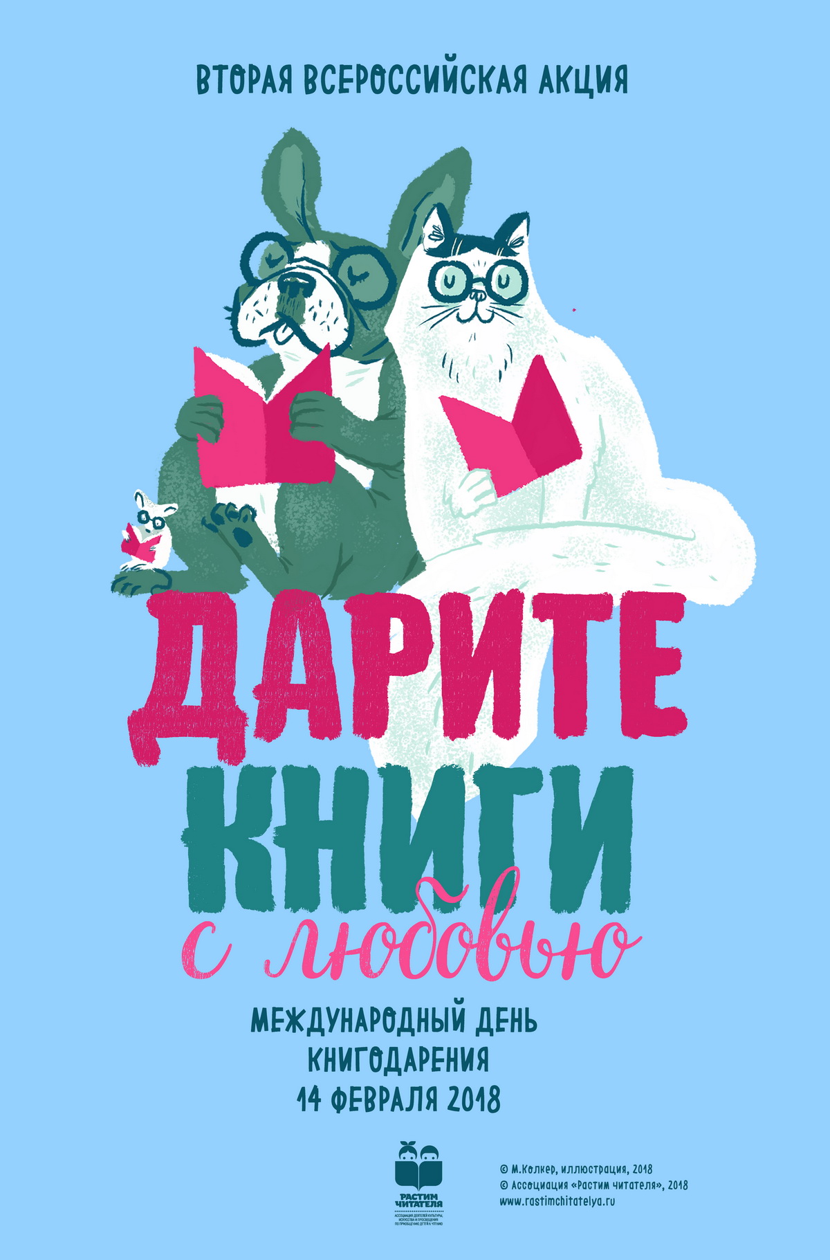 С 12 по 18 февраля 2018 года Ассоциация деятелей культуры, искусства и просвещения по приобщению детей к чтению «Растим читателя» проводит вторую Всероссийскую акцию «Дарите книги с любовью!», приуроченную к Международному Дню книгодарения.