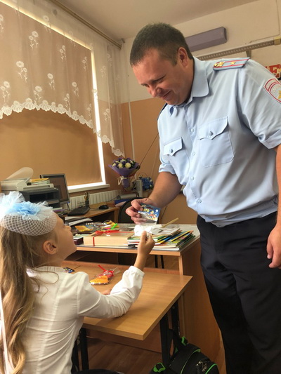 1 сентября в гостях у первоклашек школы №16 с открытым уроком побывал начальник МРЭО ГИБДД майор полиции Андрей Холостенко.