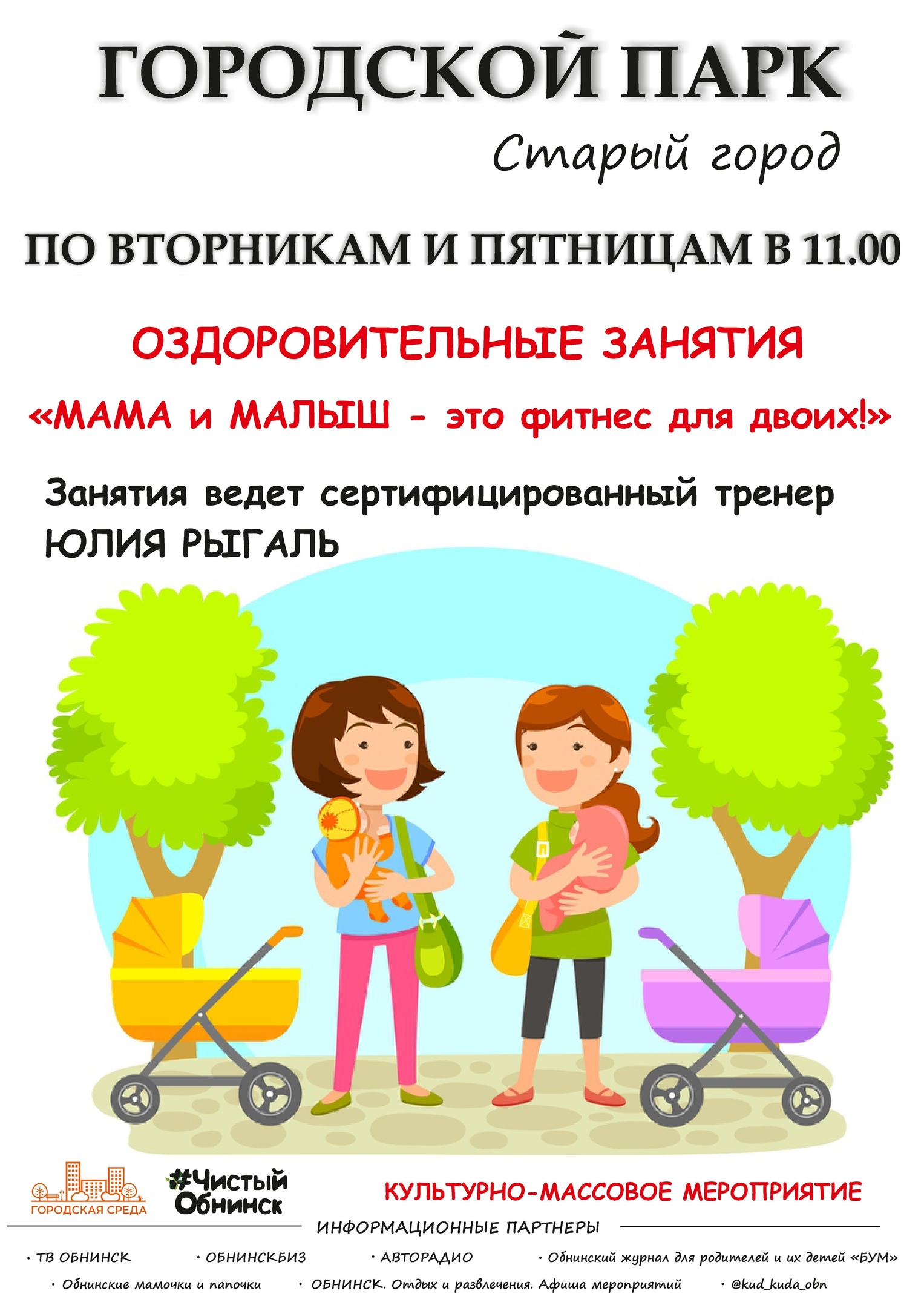 По вторникам и пятницам в 11-00 у главной сцены Городского парка теперь проводятся тренировки для всех желающих мам с малышами. Инструктор - сертифицированный тренер Юлия Рыгаль.