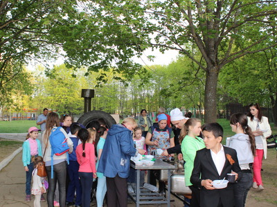 Во второй части мероприятия гости переместились на спортивную площадку школы, где показали своё мастерство воспитанницы отделения чирлидинга ДЮСШ «Квант» и бойцы взвода спецназначения «Радон» в/ч 3382. Командование части также предоставило полевую кухню, и все желающие могли угоститься кашей и чаем. Чувства светлой грусти о павших и гордости - за свою Отчизну объединяли в этот день людей всех возрастов, собравшихся отметить главный праздник страны на школьном дворе. Мероприятие посетило более 300 человек.