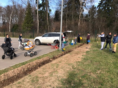 Также в субботу производилась высадка кустарника ТОС «Экодолье» вокруг детского сада. Жители совместно с управляющей компанией посади 200 кустов лапчатника.