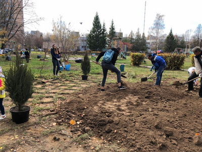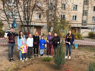 В субботу на уборку вышли жители дома №7 по улице Комарова. Горожане вместе с детьми собирали опавшую листву и высадили кустарник в своём дворе. Также в субботу прошло мероприятие по благоустройству территории двора у дома №15 по улице Аксёнова (ТОС «Звёздный»). Здесь по решению жителей дома и при поддержке УК «ЧИП» разбили большую клумбу, состоящую из различных растений, включая можжевельник.