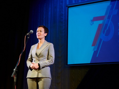 И.о. главы Администрации города Карина Башкатова обратилась к ветеранам с теплыми словами поздравления и поблагодарила за их труд: «Я уверена, что нас знают во всем мире. Обнинск занимает особое место среди атомных городов. Именно здесь была запущена Первая в мире атомная электростанция, и наш город появился вместе с ней, мы развивались вместе с атомной промышленностью». Она отметила особенный вклад, который внесли своим умом и трудом обнинские ветераны в развитие отрасли. «Мы будем делать все, чтобы вы жили в городе, который будет комфортным, безопасным – лучшим городом Земли!» - заверила Карина Сергеевна. Также она вручила от города памятный подарок Владимиру Огневу.
