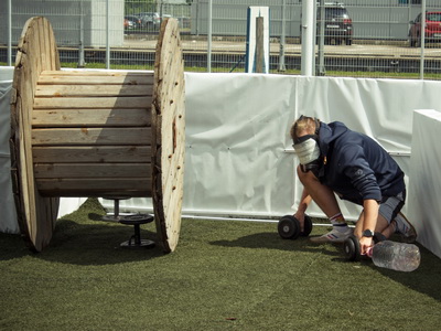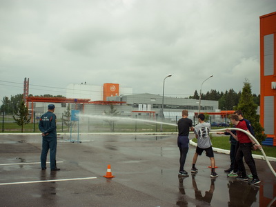 Далее участников ожидала спортивная игра, организованная работниками пожарной части и Обнинским молодежным центром. Перед ребятами предстояла задача пройти тест на знание пожарной безопасности, вслепую найти как можно больше предметов, спрятанных в помещении, а также пройти «курс молодого пожарного»: преодолеть полосу препятствий, собрать на бегу пожарный шланг и заполнить мишень водой с 10 метров.