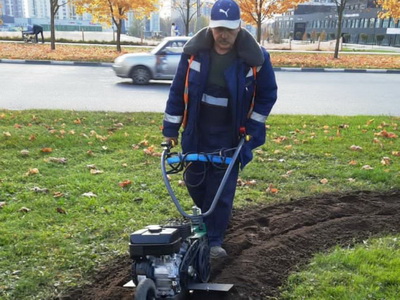 Начата работа по вспашке клумб для посадки луковиц тюльпанов, также ведутся работы по прополке кустарников и деревьев.