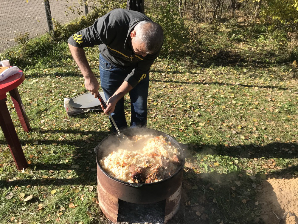 Для участников субботника было подготовлено угощение: чай с пирожками с картошкой, капустой и яблоками, а в конце мероприятия всех ждал вкусный плов, приготовленный в казане гостями из солнечного Таджикистана.