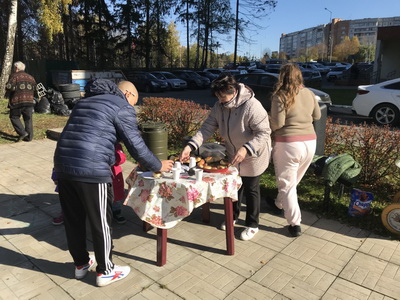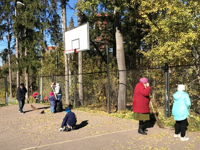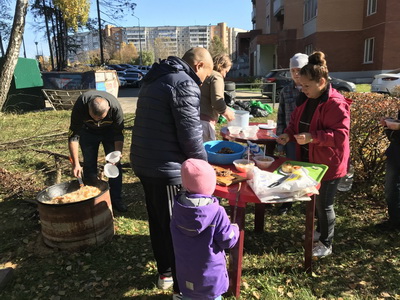 Было очень много детей, которые наравне со взрослыми приняли участие в благоустройстве придворовой территории. На спортивной площадке играла музыка, рядом была организована селфи-зона с дарами природы, также состоялся мастер- класс по изготовлению и раскрашиванию поделок из папье-маше.