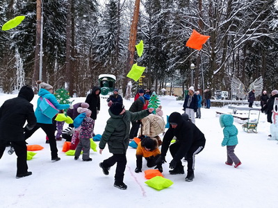 А ещё со Снежной Бабой играли в русские-народные игры, лепили из снега гусениц и котиков. С задорной Красной Шапочкой и Дедом Морозом – искали руковичку Деда Мороза, танцевали новогодние танцы, играли в «Елочки-иголочки». Вместе с Дедушкой Морозом наполнили кормушки в парке, чтобы птичкам легче было переждать морозы. В игре команды «Снегири» и «Синицы» проявили свою ловкость и сноровку!