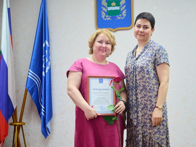 За многолетний добросовестный труд, профессиональное мастерство, значительный вклад в развитие торговли и общественного питания и в связи с профессиональным праздником Днем работника торговли она вручила благодарственные письма Администрации города: