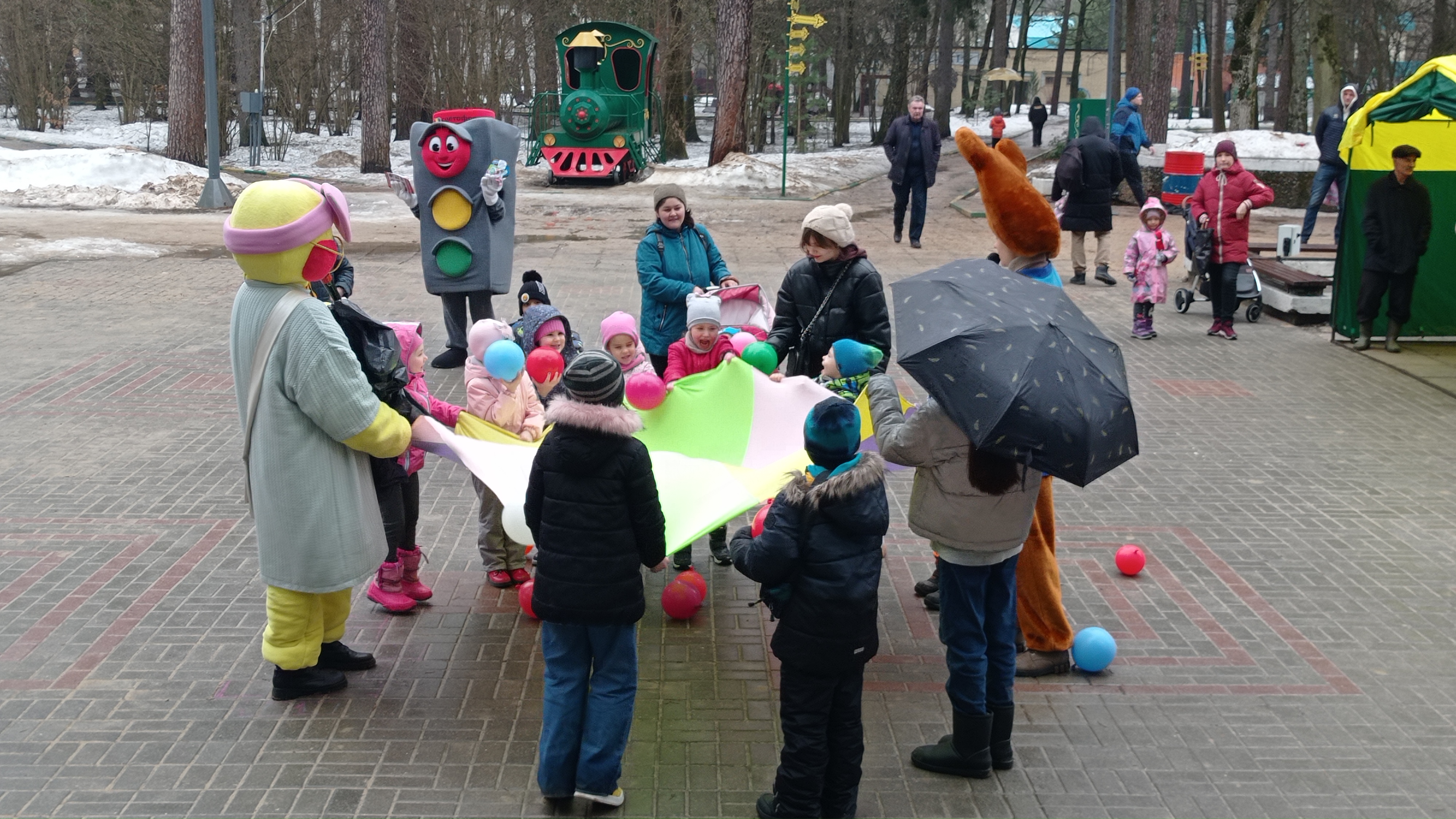 В игровой форме ребятам напомнили о правилах поведения на дорогах, вместе с ростовой куклой светофора сказочные персонажи рассказали на какой сигнал нужно переходить проезжую часть и, что делать, если мяч вылетел на дорогу.