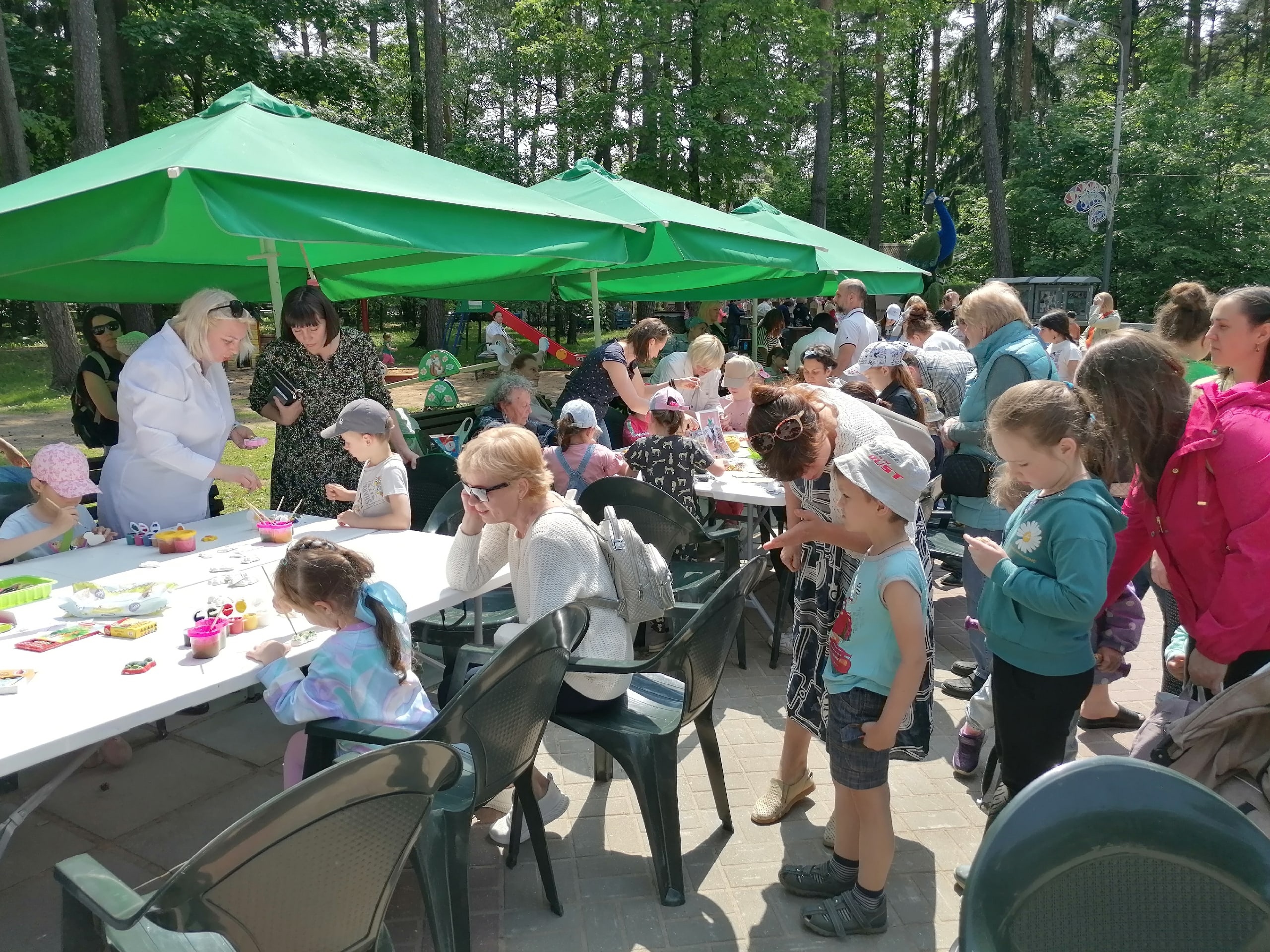 Днём для всех детей, пришедших в парк, проходили мастер-классы от английской школы "Городские каникулы", Частной Школы Современного Образования Родари, школы музыкального и нравственно-эстетического воспитания "Радуга" ДК ФЭИ, мастер-классы от Ассоциации профсоюзов г. Обнинска. Ребята мастерили из ниток и муки, делали аппликации и рисовали, научились делать ветряные вертушки.