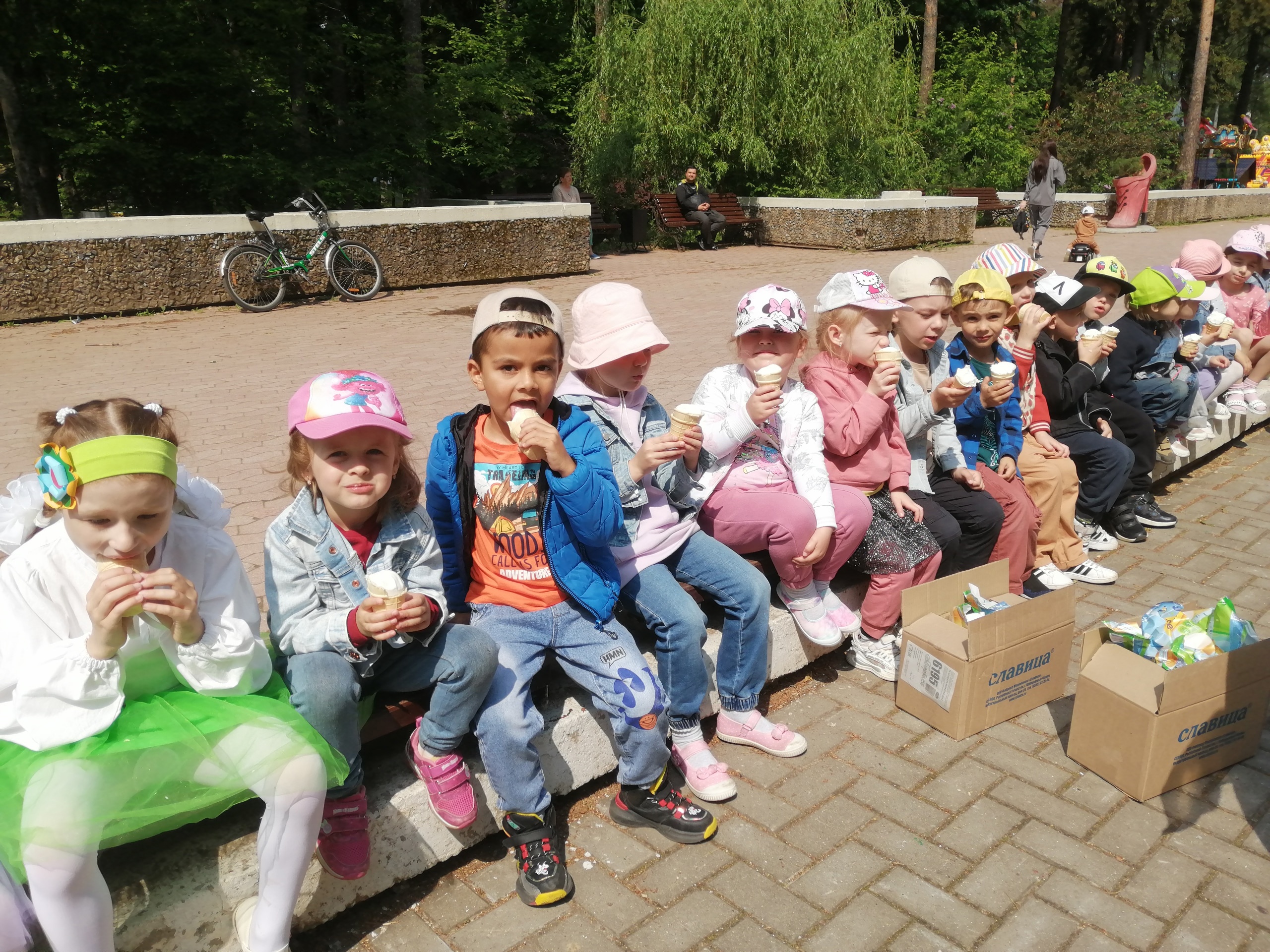 А вечерний концерт творческих коллективов города «Здравствуй лето!» (более тридцати коллективов) собрал в парке много гостей. Дети пели и танцевали – показывали все свои навыки, приобретённые в прошедшем учебном году.
