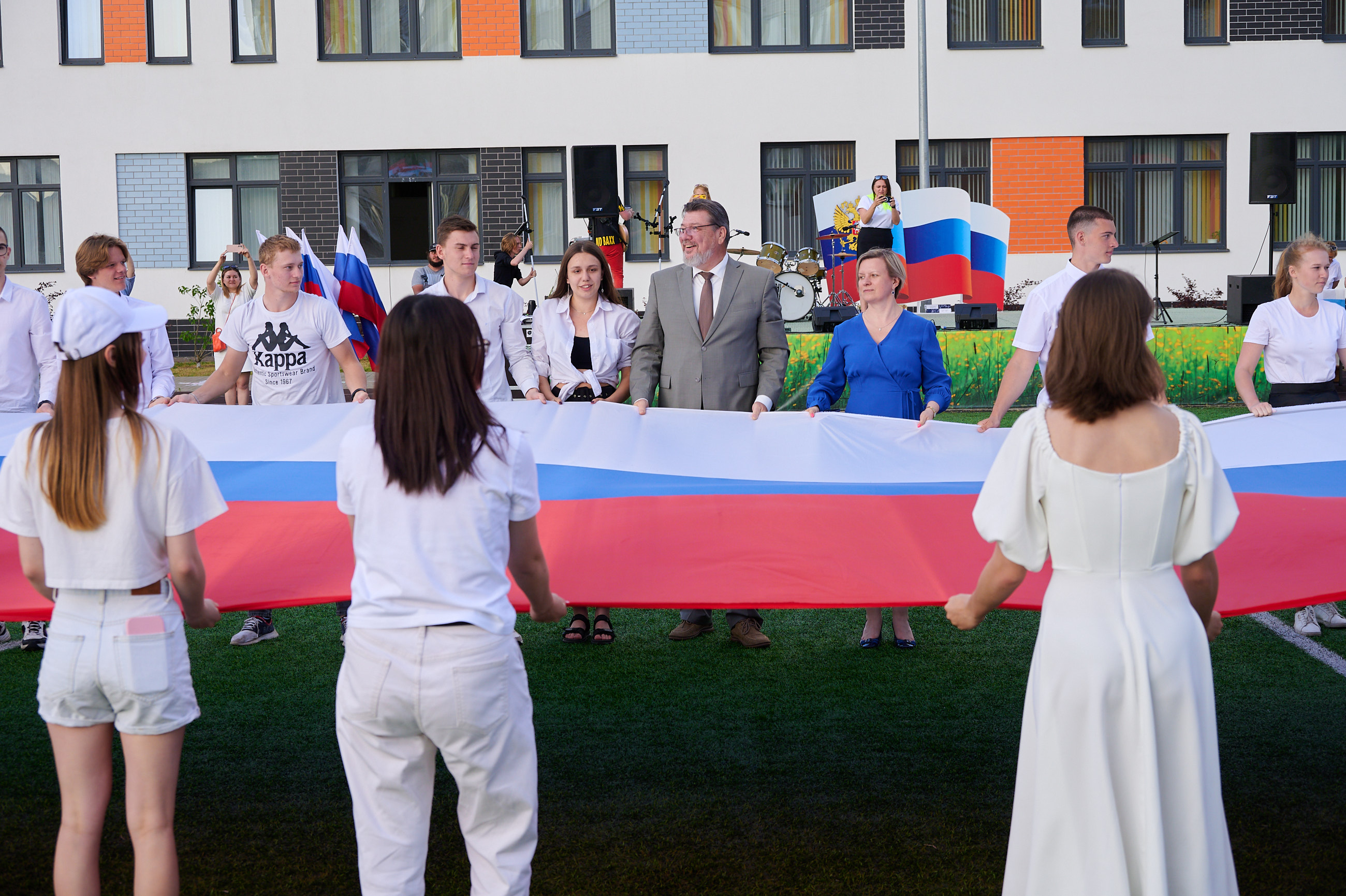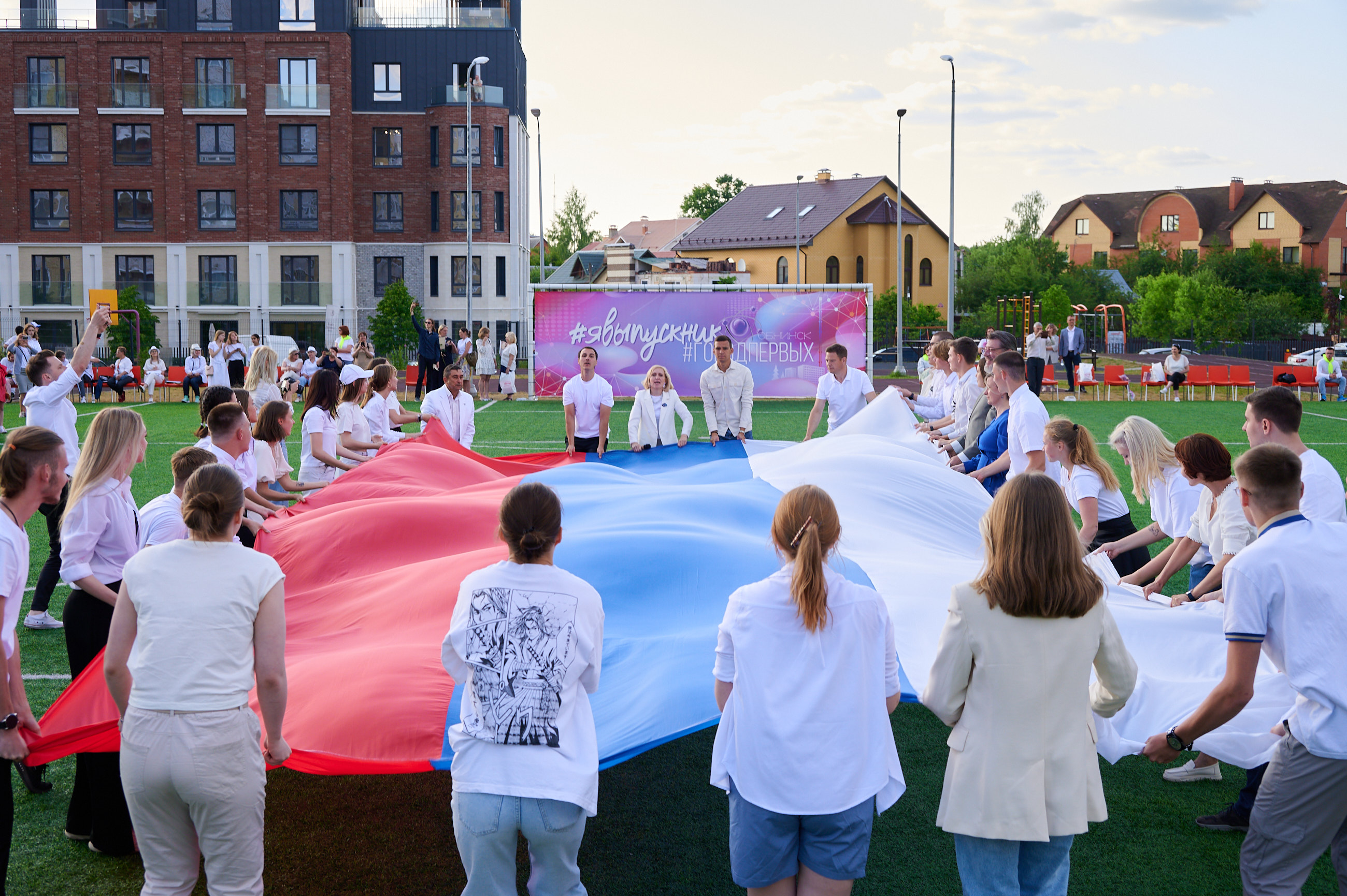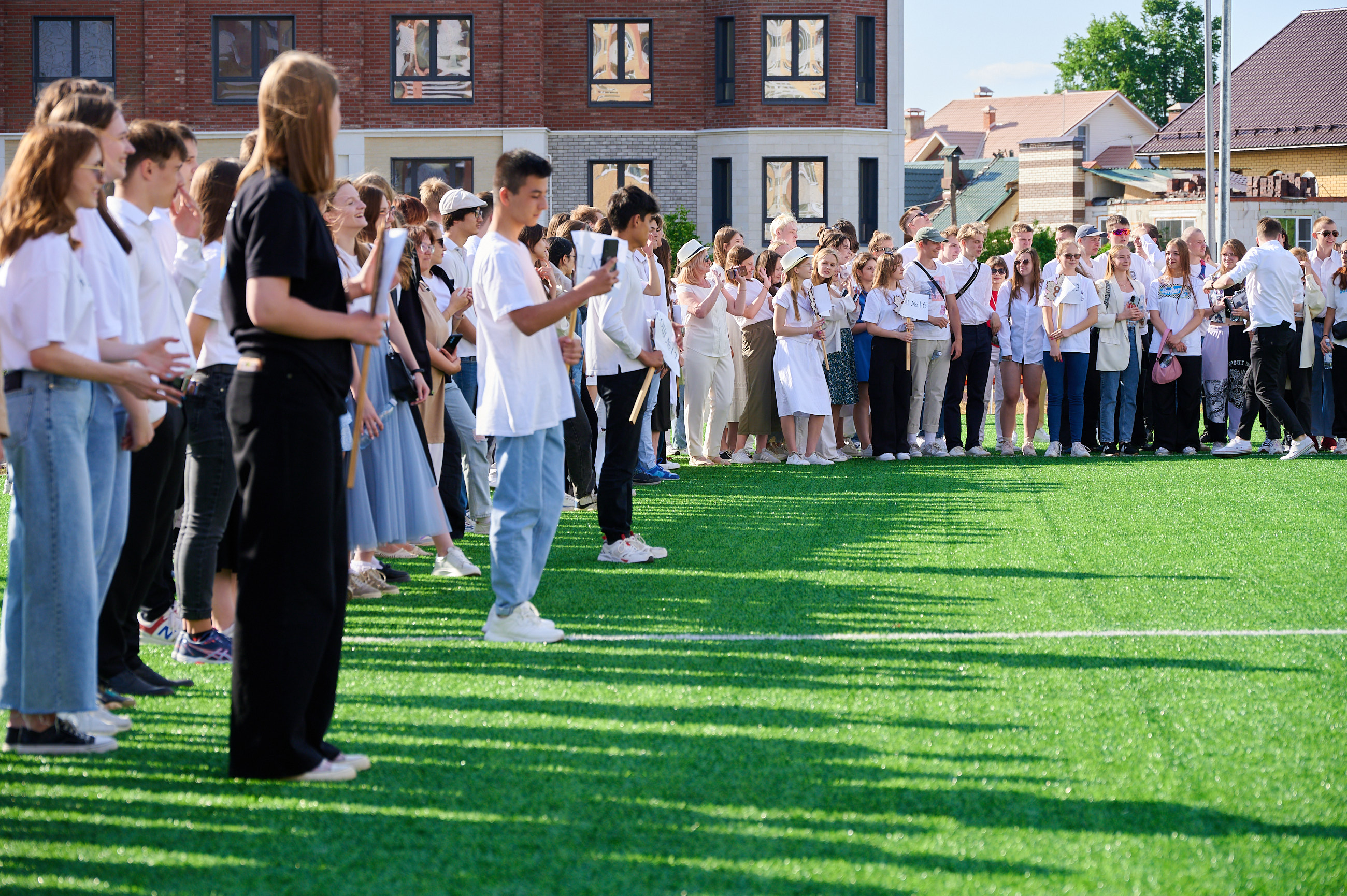 Не обошлось и без флешмоба: выпускники с помощью белых, синих и красных листков пустили «волну», а потом вместе развернули огромный триколор, который в такт музыке развевали на ветру. И хоть здесь собрались ребята из разных школ, но общий перфоманс однозначно их сблизил и объединил.