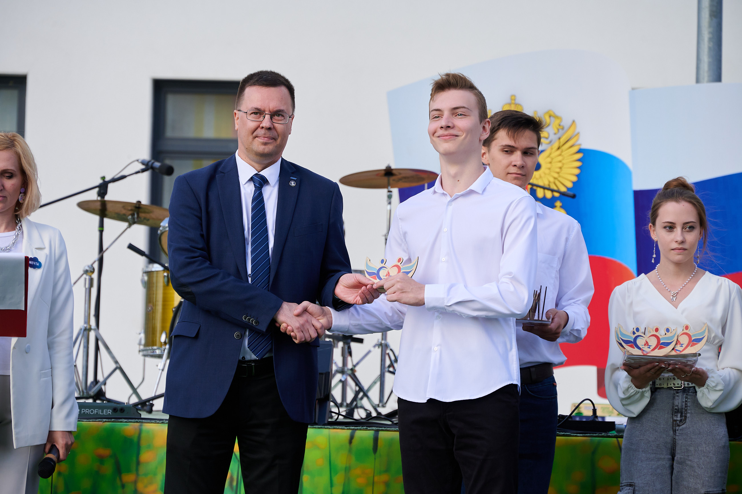Пока шел сбор гостей, молодежь делала селфи у фотозоны, танцевала и общалась с энергичными ведущими. Официальная же часть стартовала с вручения почетных грамот педагогам и одиннадцатиклассникам, которые хорошо проявили себя в учебе, творчестве, общественной деятельности и волонтерстве.