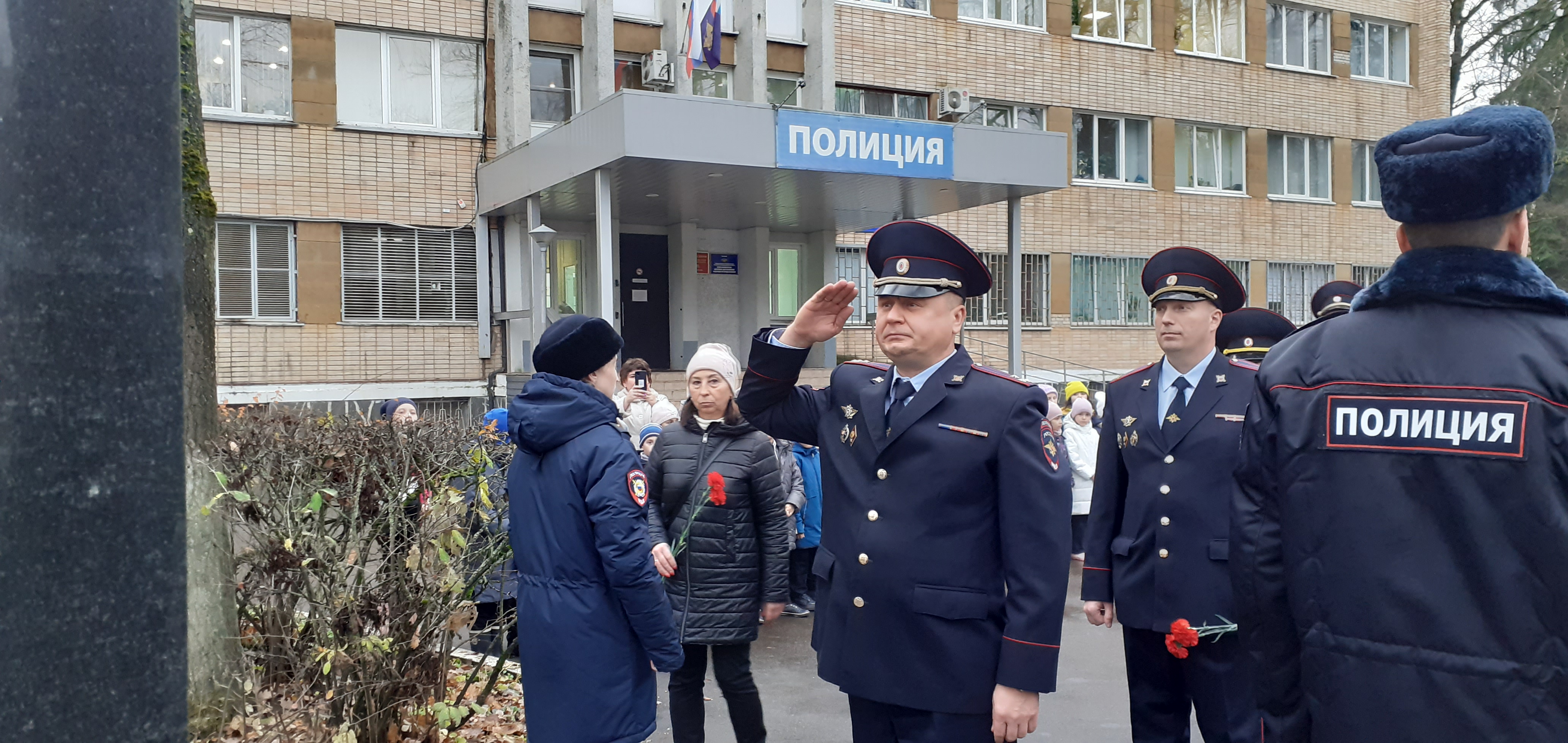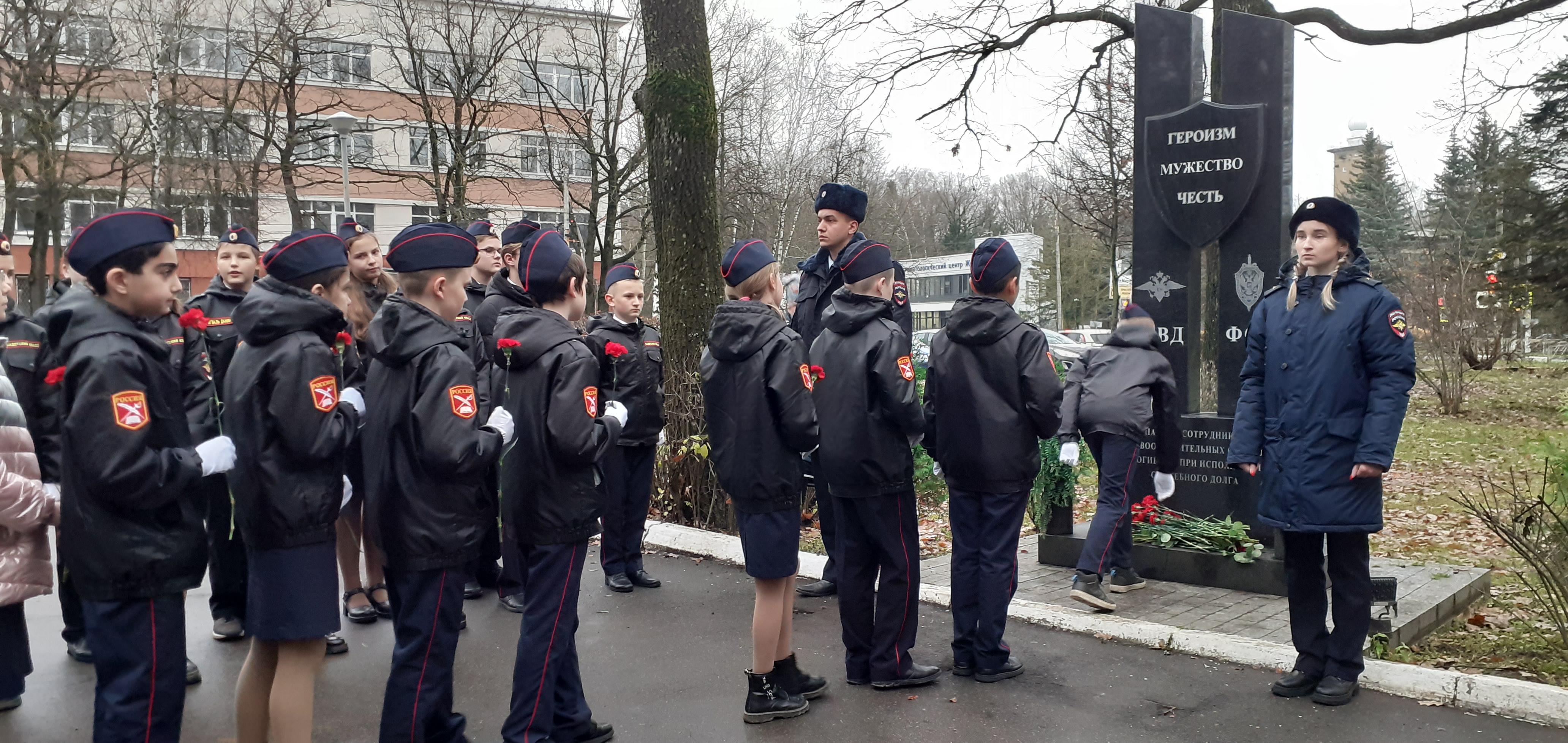 Участники мероприятия возложили цветы к установленному на территории ОМВД памятнику погибшим сотрудникам «Героизм. Мужество. Честь».