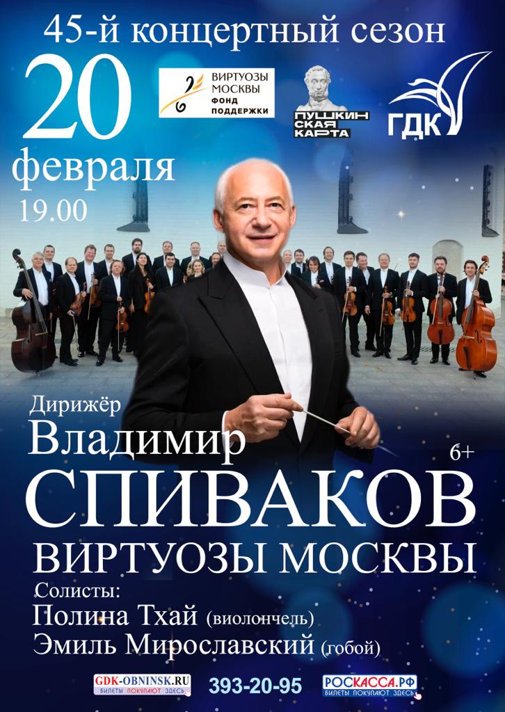 20 февраля в 19:00 в Городском Дворце Культуры состоится концерт Государственного камерного оркестра «Виртуозы Москвы» (6+).