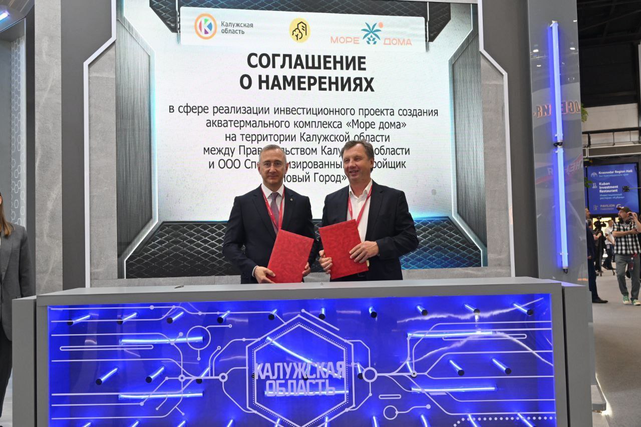 5 июня в Санкт-Петербурге в рамках XXVII Петербургского международного экономического форума состоялась церемония подписания соглашения о намерениях в сфере реализации инвестиционного проекта создания акватермального комплекса «Море дома» в Калужской области между Правительством Калужской области, администрацией муниципального образования муниципального района «Боровский район» и ООО Специализированный Застройщик «Новый Город».
