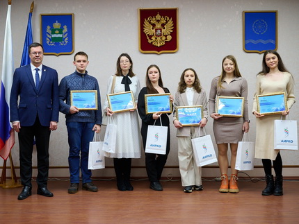 Генеральный директор АО «АИРКО» Павел Гранков наградил дипломом победителя XXII конкурса в номинации «Студенты 2-4 курса» и стипендией в размере 11 000 рублей студентов ИАТЭ НИЯУ МИФИ: Анну Семёнову, Анну Патракееву, Сергея Герасина, Сергея Андрейчука, Александру Воронцову и Юлию Данилюк.