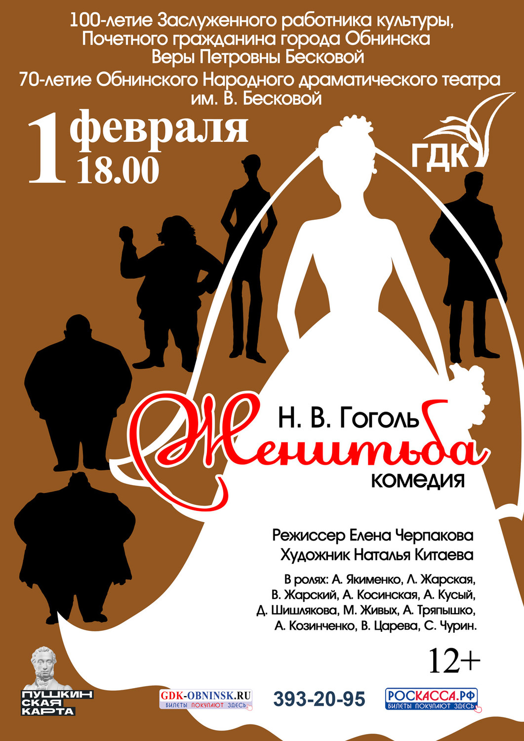 1 февраля в 18-00 в Городском Дворце Культуры состоится спектакль по комедии Н.В, Гоголя «Женитьба» (12+).
