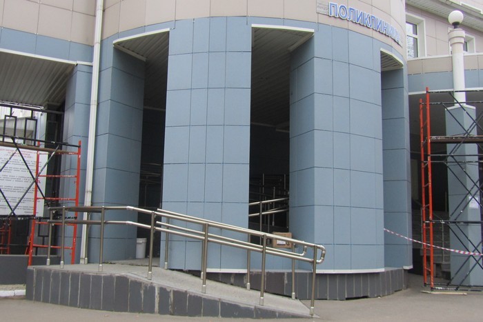 Поликлиника ИМР расположена на первом этаже недавно построенного здания. Здесь также проблем с доступом нет: пологий пандус, широкие двери.