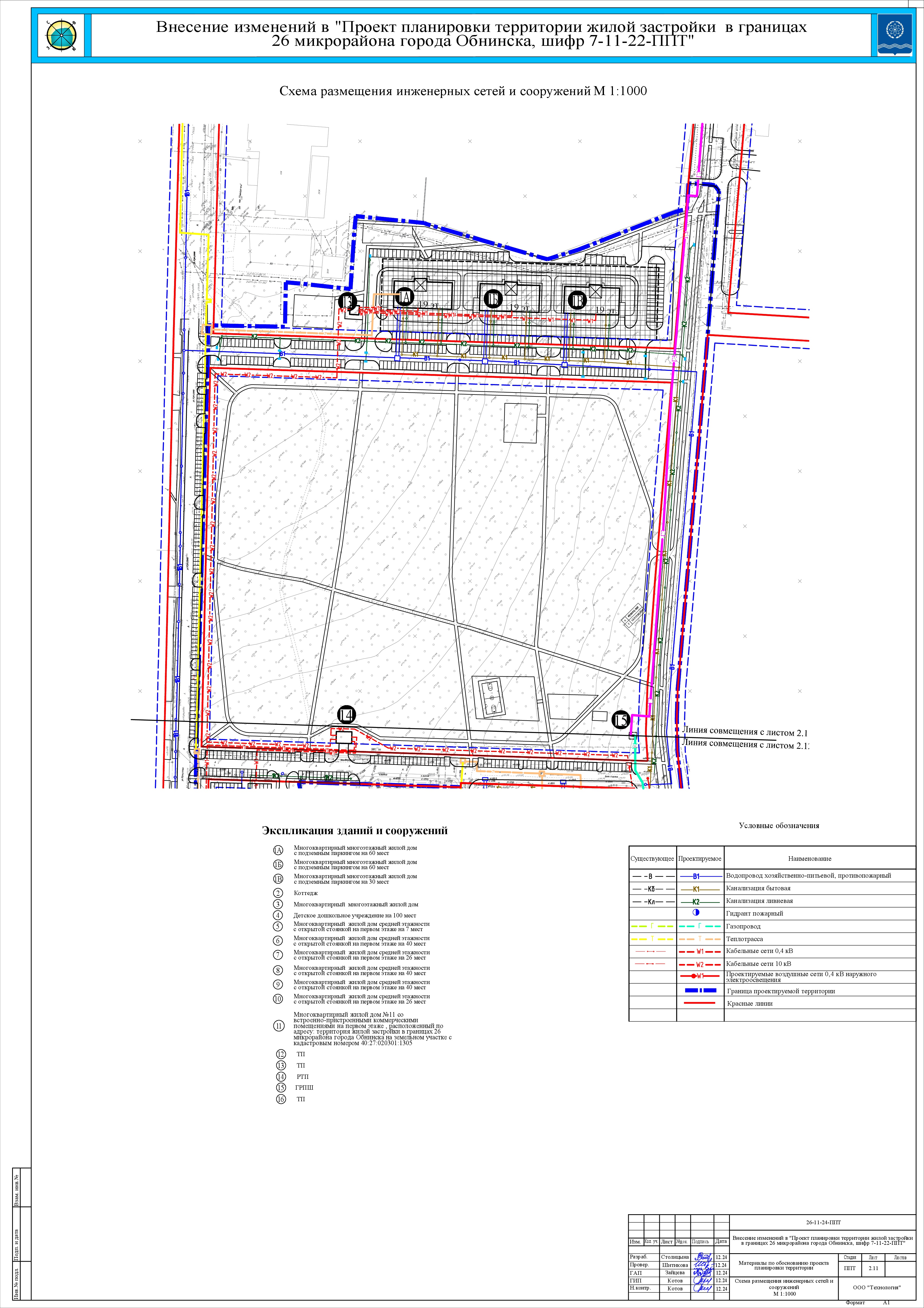 Схема размещения инженерных сетей и сооружений, лист 1 (скачать)