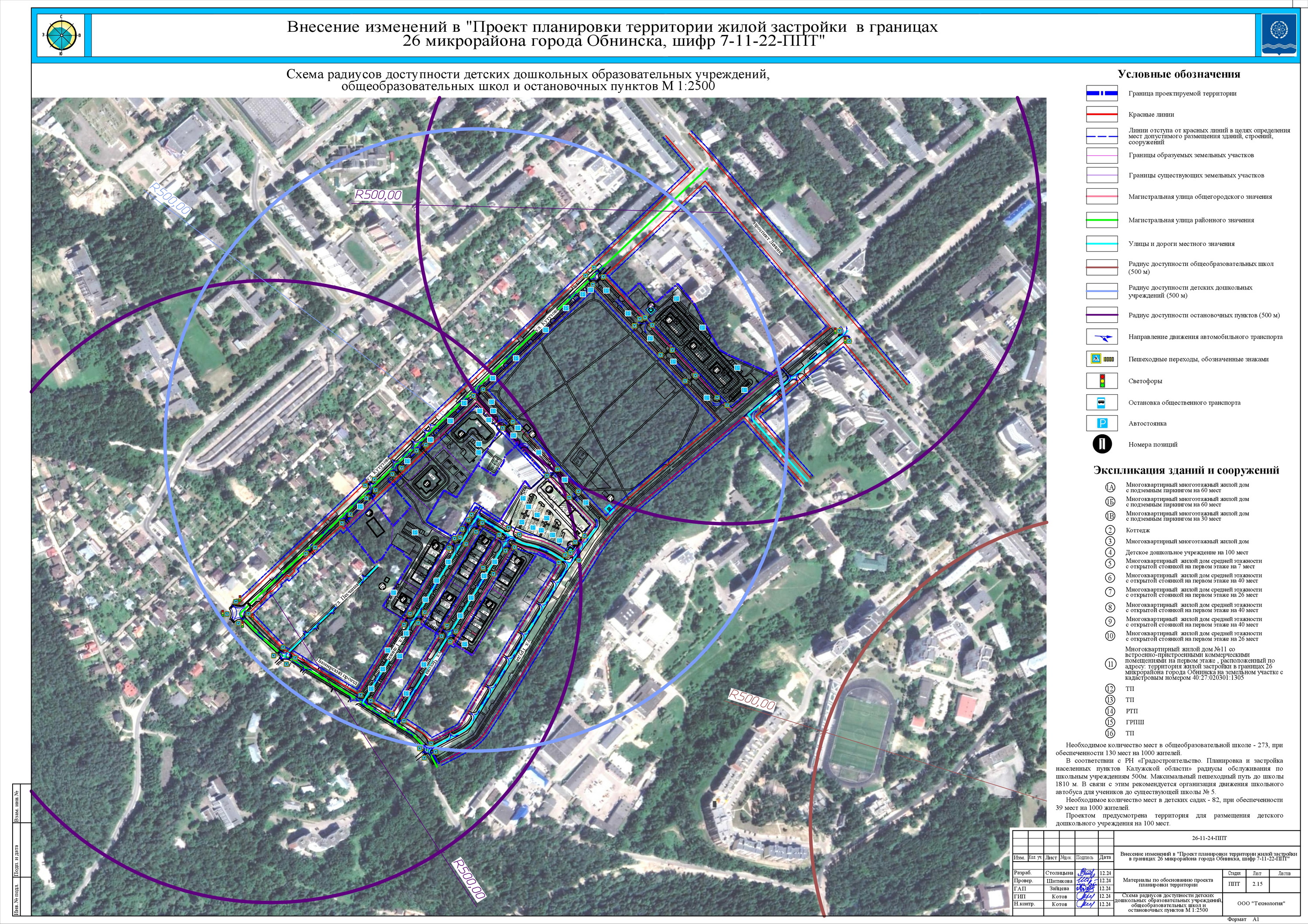 Схема радиусов доступности детских дошкольных образовательных учреждений, общеобразовательных школ и остановочных пунктов, лист 1 (скачать)