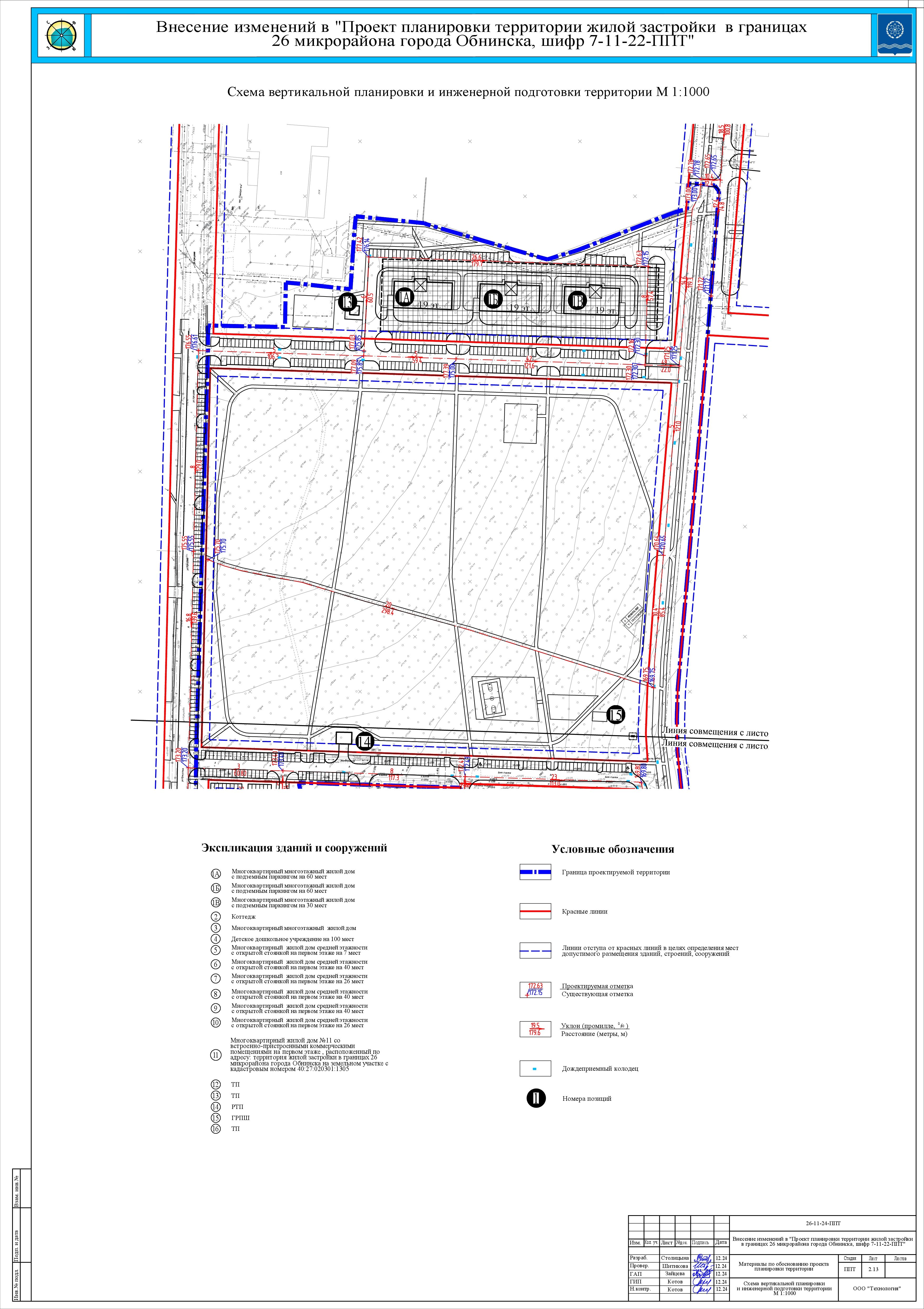 Схема вертикальной планировки и инженерной подготовки территории, лист 1 (скачать)