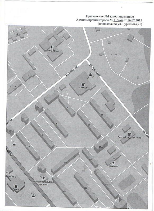 - магазин «ТД «Ветеран», ООО «Юлия», ул. Гурьянова,19а, магазин «Самсон», ООО «Орбита», ул. Комарова, 1;