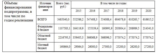 1.3.2. Пункт «Объёмы финансирования подпрограммы, в том числе по годам реализации» изложить в новой редакции: