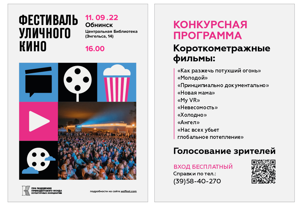 11 сентября в 16-00 в лекционном зале Центральной библиотеки (ул.Энгельса, д.14) (12+) пройдет фестиваль уличного кино.