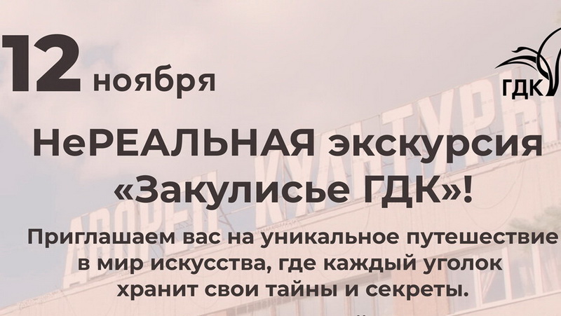 12 ноября в 10:00 Городской Дворец Культуры приглашает вас на уникальное путешествие в мир искусства, где сбудутся самые смелые мечты! Вы сможете увидеть, что скрывается за занавесом, и окунуться в атмосферу закулисья Городского дворца культуры, где каждый уголок хранит свои тайны и секреты.
