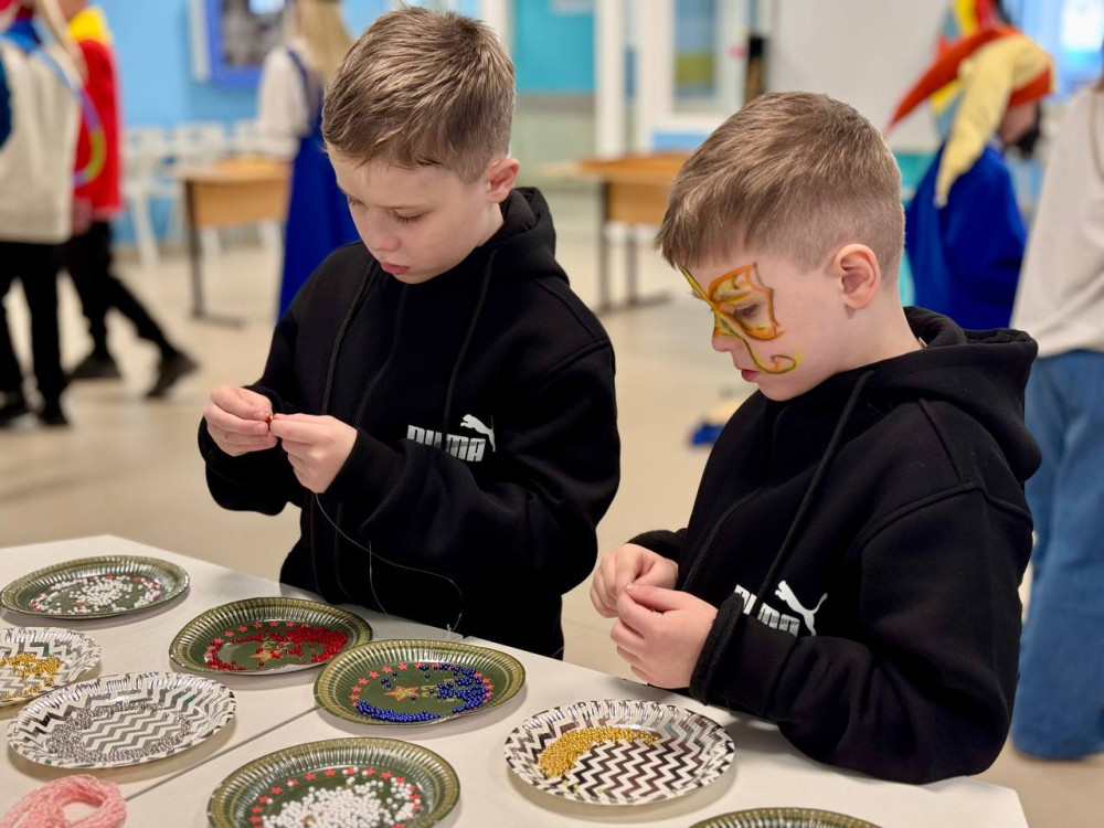 Дети разделились на команды и выполняли задания на интерактивных станциях: мастерили поделки своими руками, соревновались в весёлых эстафетах и участвовали в турнирах на мечах.
