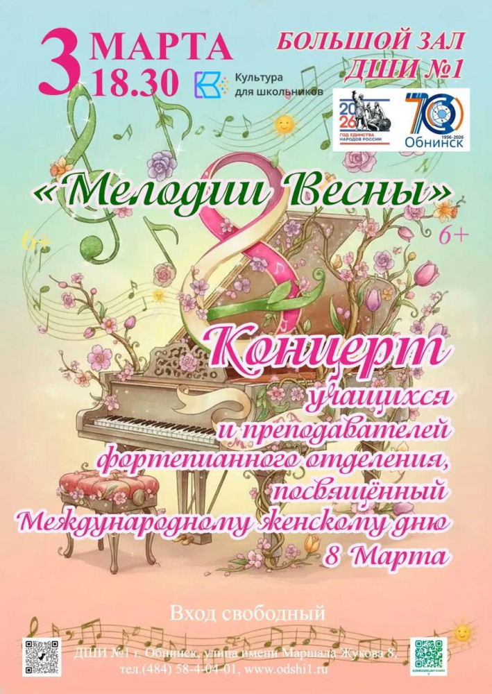 3 марта, 18:30 «Мелодии Весны» концерт учащихся и преподавателей фортепианного отделения. (6+)