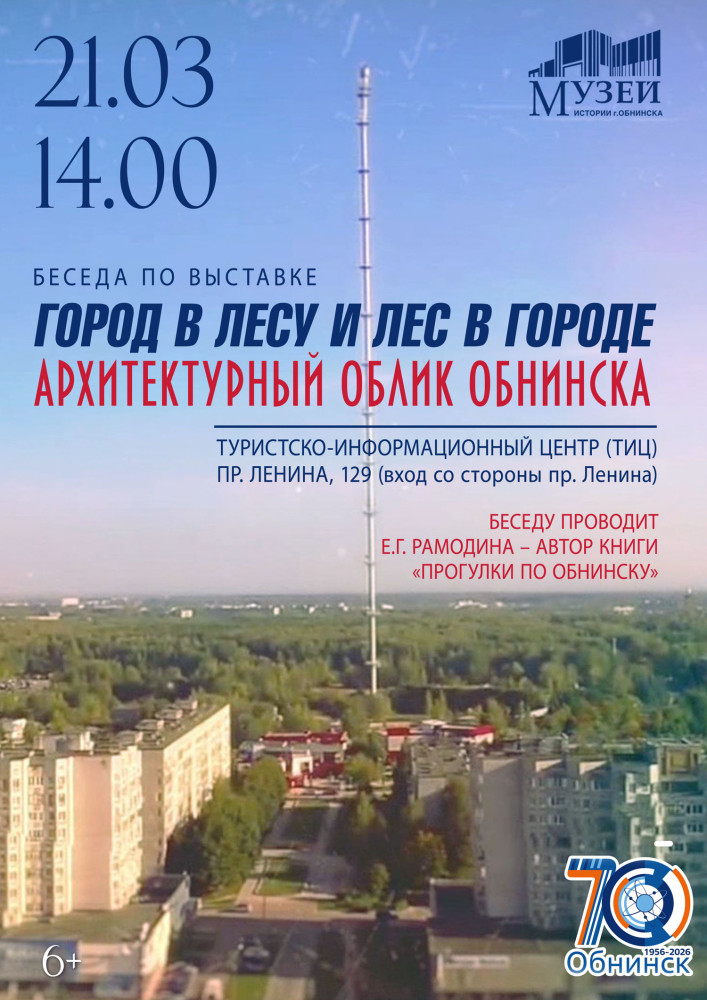 21 марта в 14:00 состоится беседа по выставке, которую проведёт Е.Г. Рамодина – автор книги «Прогулки по Обнинску».