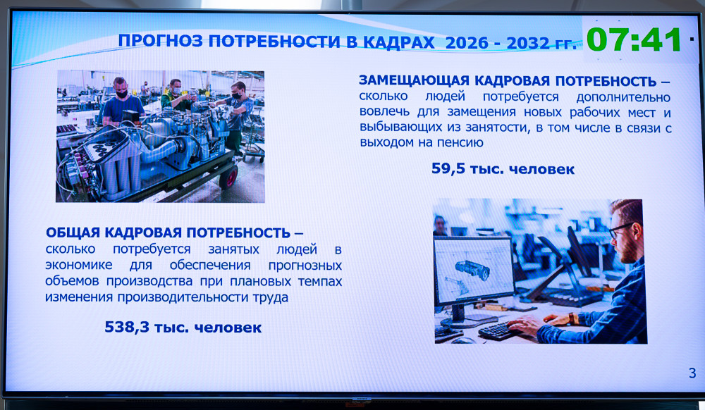По данным, представленным главой ведомства, в соответствии с Методикой формирования прогноза потребности экономики России в кадрах, сформирован региональный прогноз на 2026-2032 годы. В его основе - данные опроса 2592 работодателей. При составлении также использованы статистические данные о рынке труда, демографический прогноз и прогнозные экономические показатели.