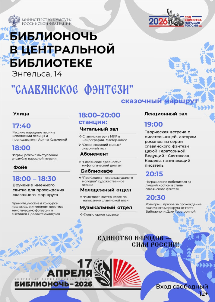 17 апреля Центральная библиотека (ул. Энгельса, 14) приглашает на ежегодную акцию «Библионочь – 2026».