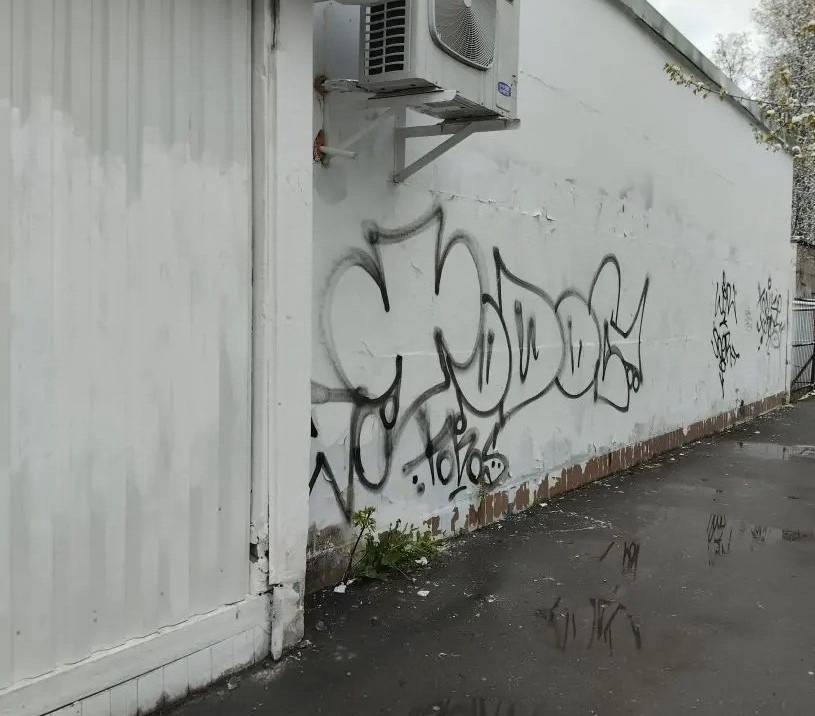 У магазинов «Магнит» на ул. Лейпунского, 5 и ул. Королёва, 14 закрашены граффити на фасадах зданий.