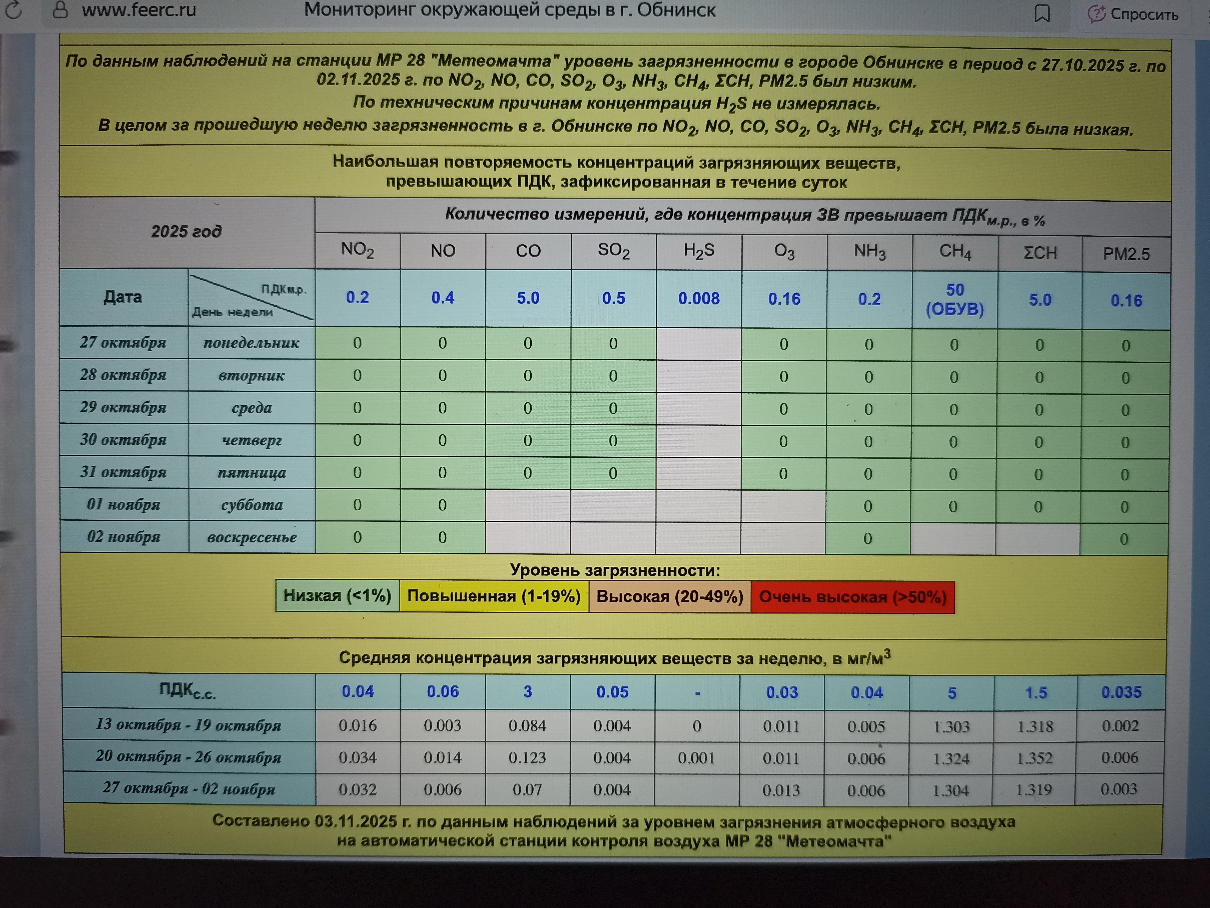 Данные за период с 27.10.25 по 02.11.25
