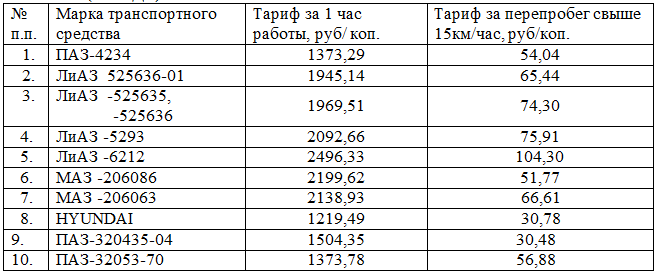 1.Установить с 01.01.2020 тарифы на заказные перевозки, выполняемые МП «ОПАТП» (без НДС):