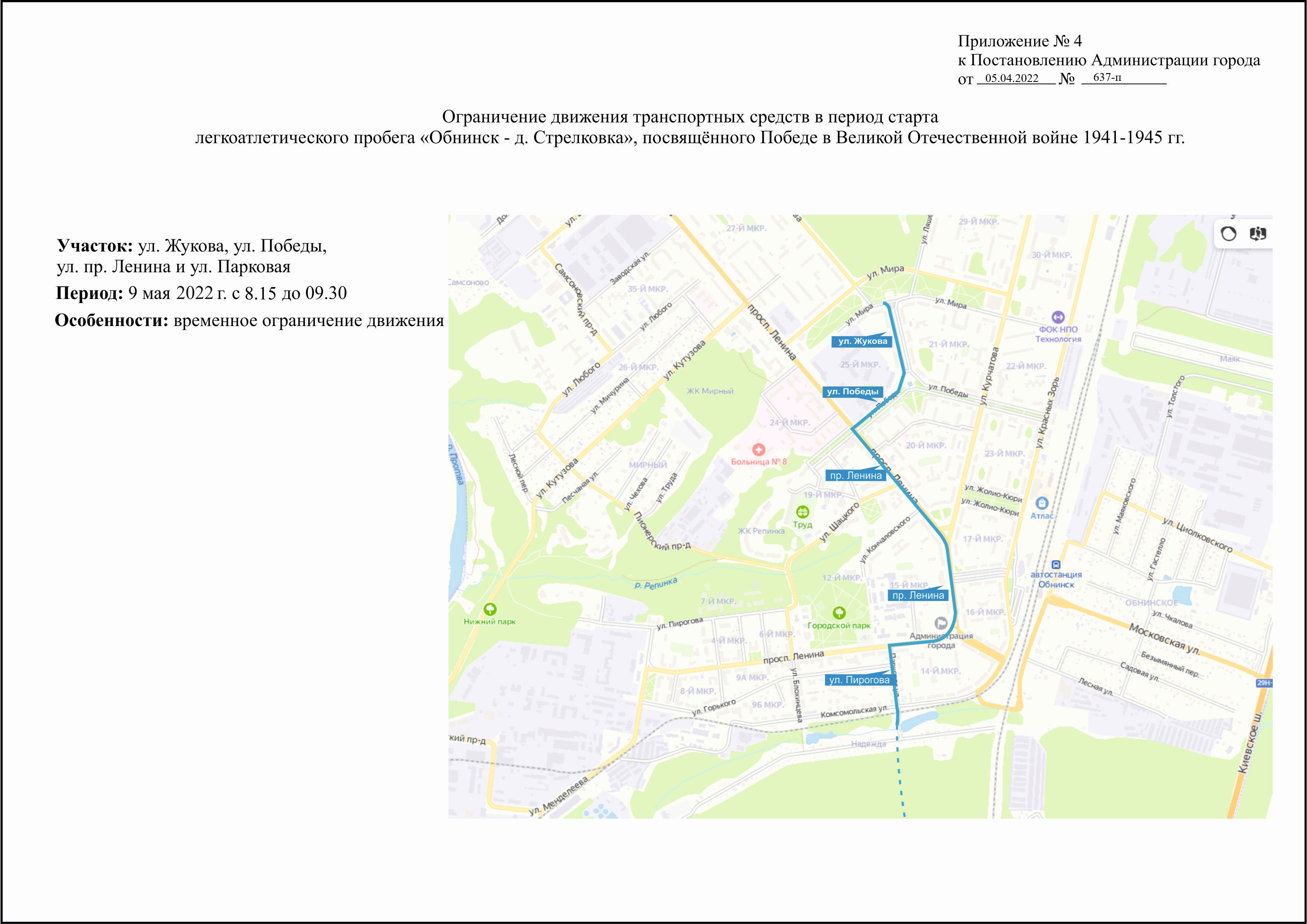 - с 8.15 до 9.15 часов на участке автомобильной дороги по ул. Маршала Жукова (нечетная сторона), на участке автомобильной дороги по ул. Победы (от пересечения с ул. Маршала Жукова до пересечения с пр. Ленина), на участке автомобильной дороги по пр. Ленина (от пересечения с Победы до пересечения с ул. Парковая), на автомобильной дороге по ул. Парковая, ул. Кончаловские горы (Приложение № 4).