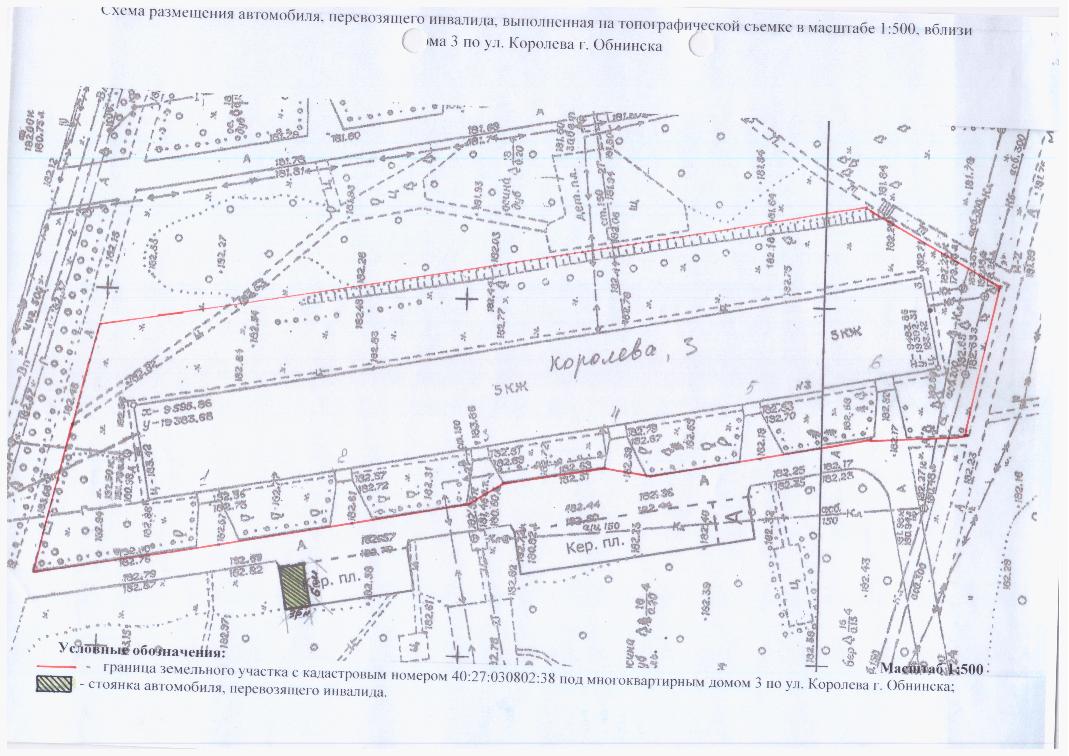 Проект Постановления администрации города «Об утверждении схемы размещения стоянки автомобиля, перевозящего инвалида, вблизи места его жительства по адресу: Калужская область, г. Обнинск, ул. Королева, д. 3», Приложение