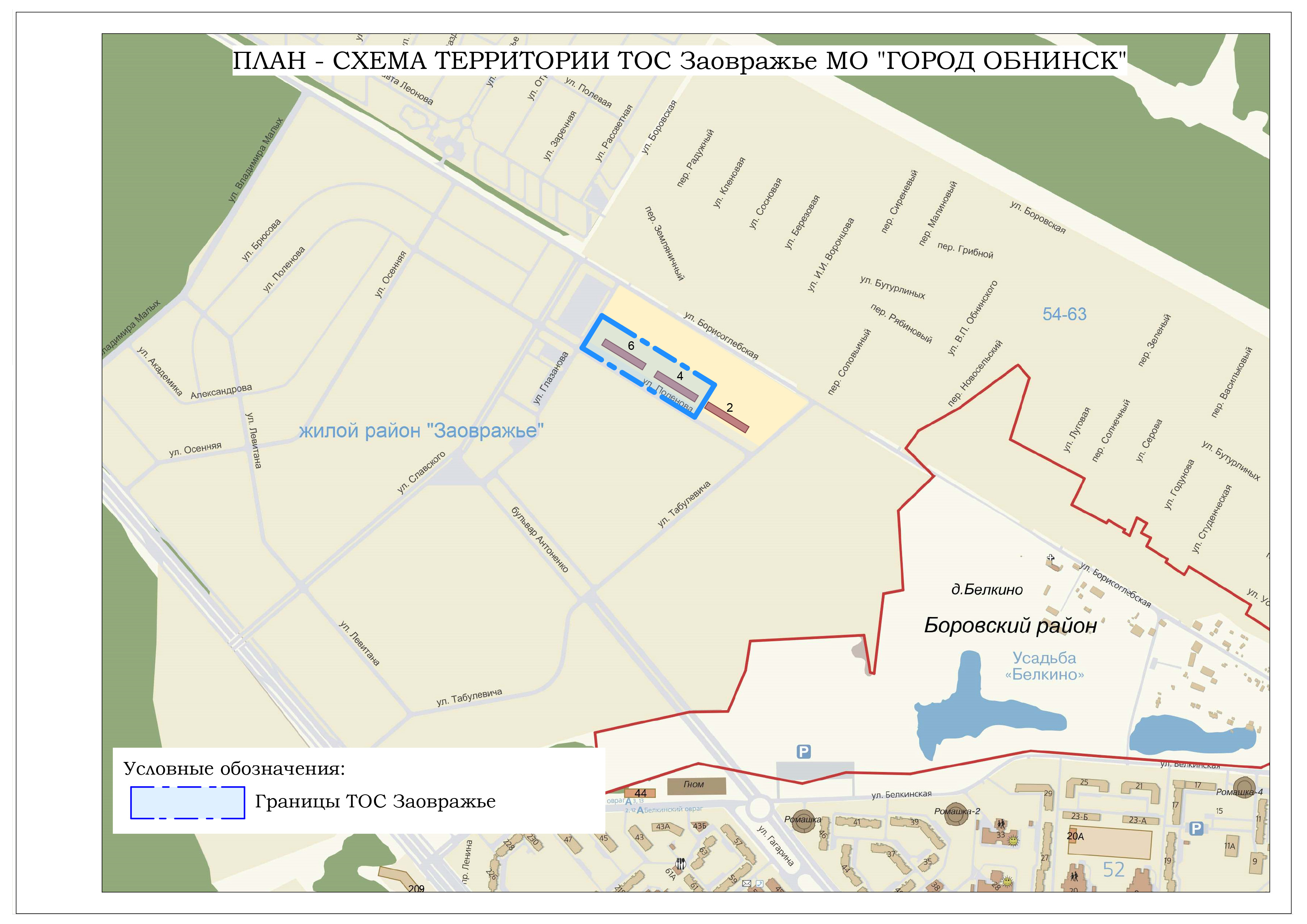 Установить границы территориального общественного самоуправления «ТОС «Заовражье»» в соответствии с существующими границами Генерального плана муниципального образования "Город Обнинск", включающие дома N 4, 6 по улице Поленова, согласно плану-схеме (прилагается).