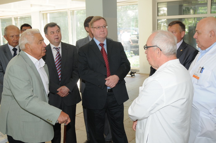 Вместе с губернатором Калужской области Анатолием Артамоновым Сергей Степашин побывал в МРНЦ, где познакомился с работой специалистов отдела лучевой терапии. В ходе визита гости города обсудили с руководителем МРНЦ академиком Анатолием Цыбом проект создания в Обнинске Центра ядерной медицины. Сергей Степашин поддержал планы губернатора Калужской области по развитию в Обнинске этого научного направления, важного для сохранения здоровья россиян – по прогнозам ученых, использование методов ядерной медицины поможет существенно снизить смертность населения от рака и болезней сердца.