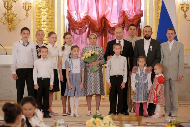 На прошедшей торжественной церемонии президентом РФ В.В.Путиным были вручены награды 8 семьям, достойно воспитывающим детей из различных регионов страны. Среди награжденных и многодетная семья из г.Обнинска, семья Ходыревых Сергея Борисовича и Марины Анатольевны. В этой семье воспитываются 12 детей и, в ближайшем будущем, ожидается пополнение – тринадцатый ребенок.