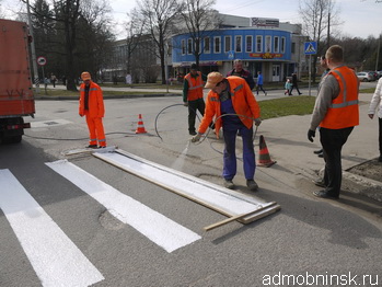 В рамках подготовительных мероприятий по безопасности дорожного движения силами МПКХ проводятся работы по нанесению горизонтальной дорожной разметки. Разметка наносится и на пешеходных переходах.