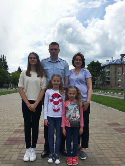 Многие черты характера, безусловно, зависят не только от специфики работы, но прежде всего и от тех людей, которые находятся рядом с человеком в его жизни. Для любимых дочек Марии, Екатерины и Ольги, он лучший папа на свете. Семья - это те люди, благодаря которым человек зайдя утром в свой кабинет готов достойно и добросовестно исполнять свои служебные обязанности. В семье к выбору профессии папы относятся с пониманием. Жена Светлана тоже носила погоны, работая следователем следственного отдела.